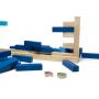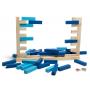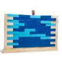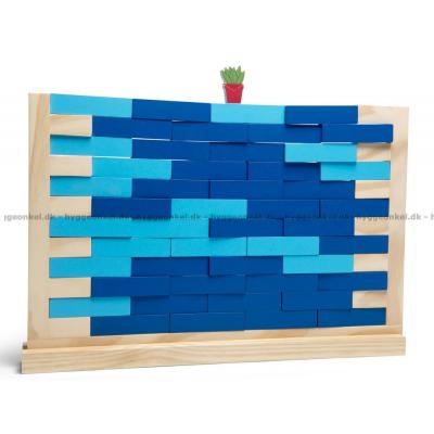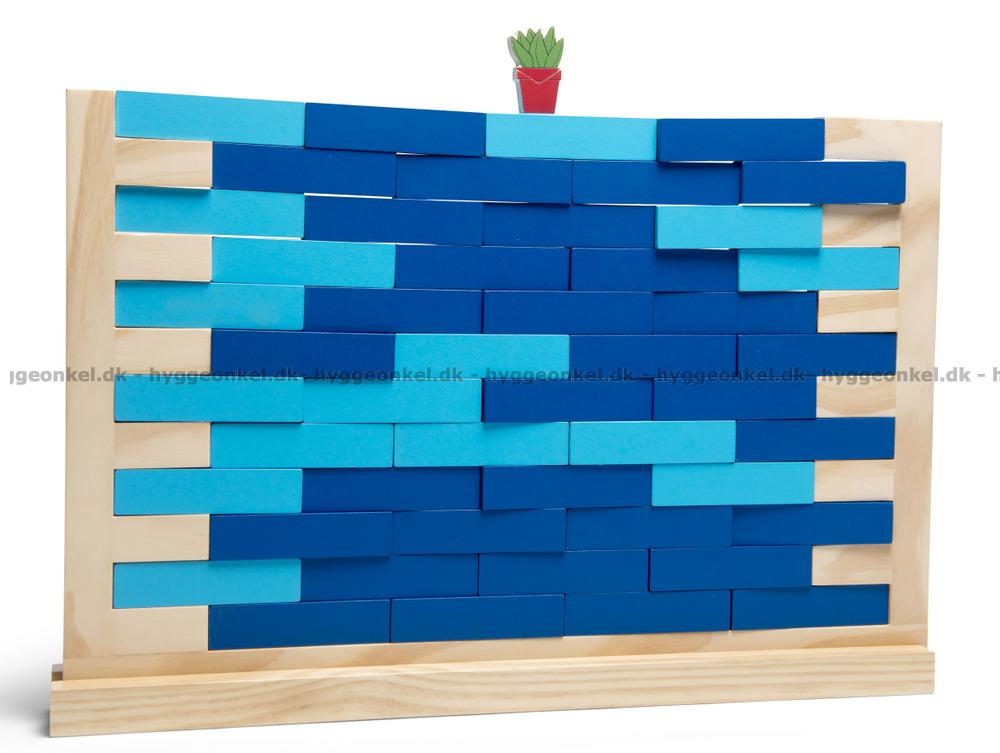 1 träram (50 x 34 x 6 cm), 48 träklossar (cirka 10 x 2,5 x 2 cm) och en växt i trä.