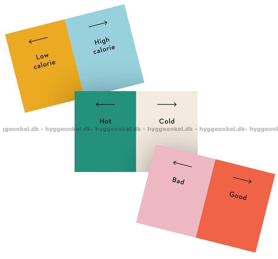 Det kan till exempel stå HOT >< COLD på ett kort. Som spelare kan man då komma med ledordet KAFFE. Var ska den röda visaren stå för att träffa spektrumet? Kaffe är ju ofta varmt, men inte så varmt som lava eller solen…