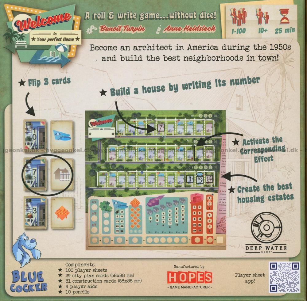 Welcome To Your Perfect Home är en ny giv inom "Roll & Write"-genren av spel – den här gången används ett set kort istället för tärningar. I Welcome To… är spelarna amerikanska arkitekter på 1950-talet som ska planera och bygga ett förstadskvarter.