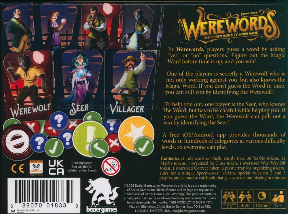 Men, en av spelarna är också varulv. Den spelaren arbetar inte bara mot resten av gruppen - han/hon vet också det magiska ordet. Om spelarna inte kan gissa rätt ord innan tiden löper ut, kan de fortfarande vinna genom att gissa vem som är varulven! För att göra allt lite lättare är en av spelarna synsk. Den som är synsk känner till ordet men ska vara försiktig med att hjälpa de andra spelarna eftersom varulven kan vinna genom att gissa vem som är synsk!