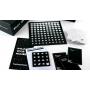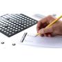 I asken finner du ett spelbräde, en mängd kort och ett block.
