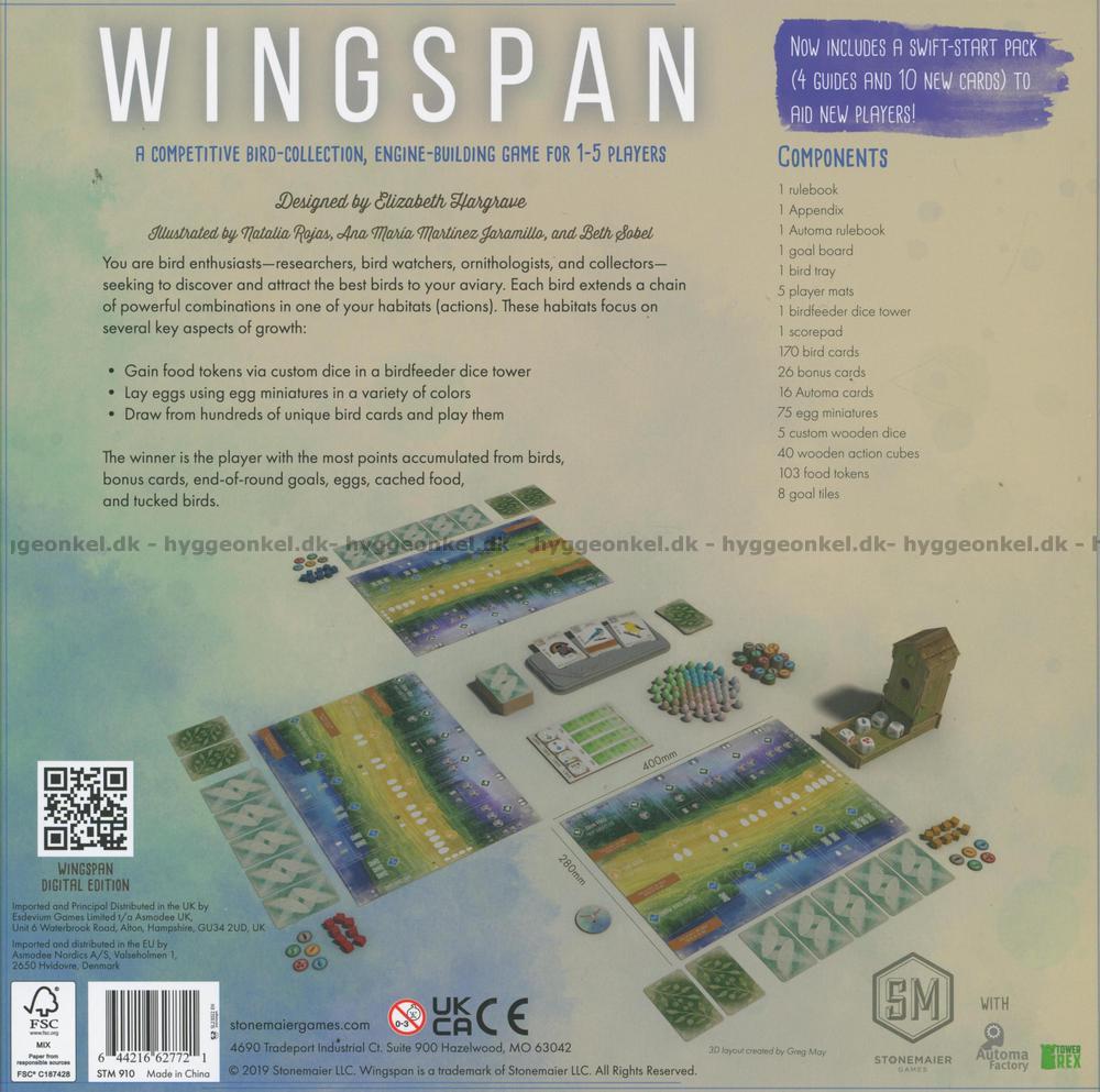 Wingspan är ett tävlingsspel av medelhög svårighetsgrad i vilket spelarna ska bygga en "poängmaskin".