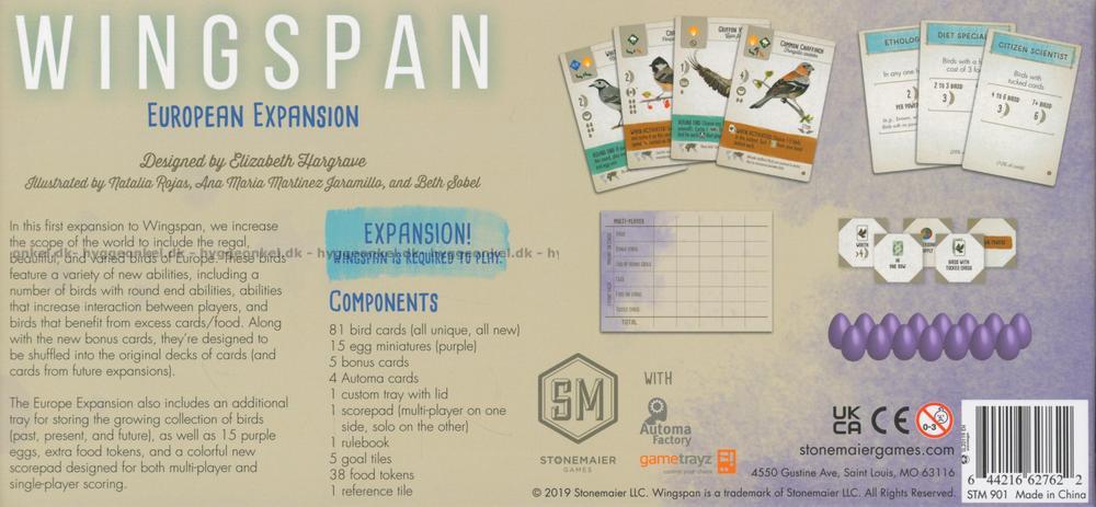 Med denna expansion adderas en lång rad europeiska fåglar till spelet.