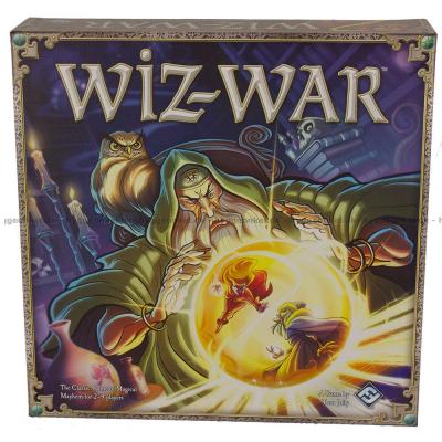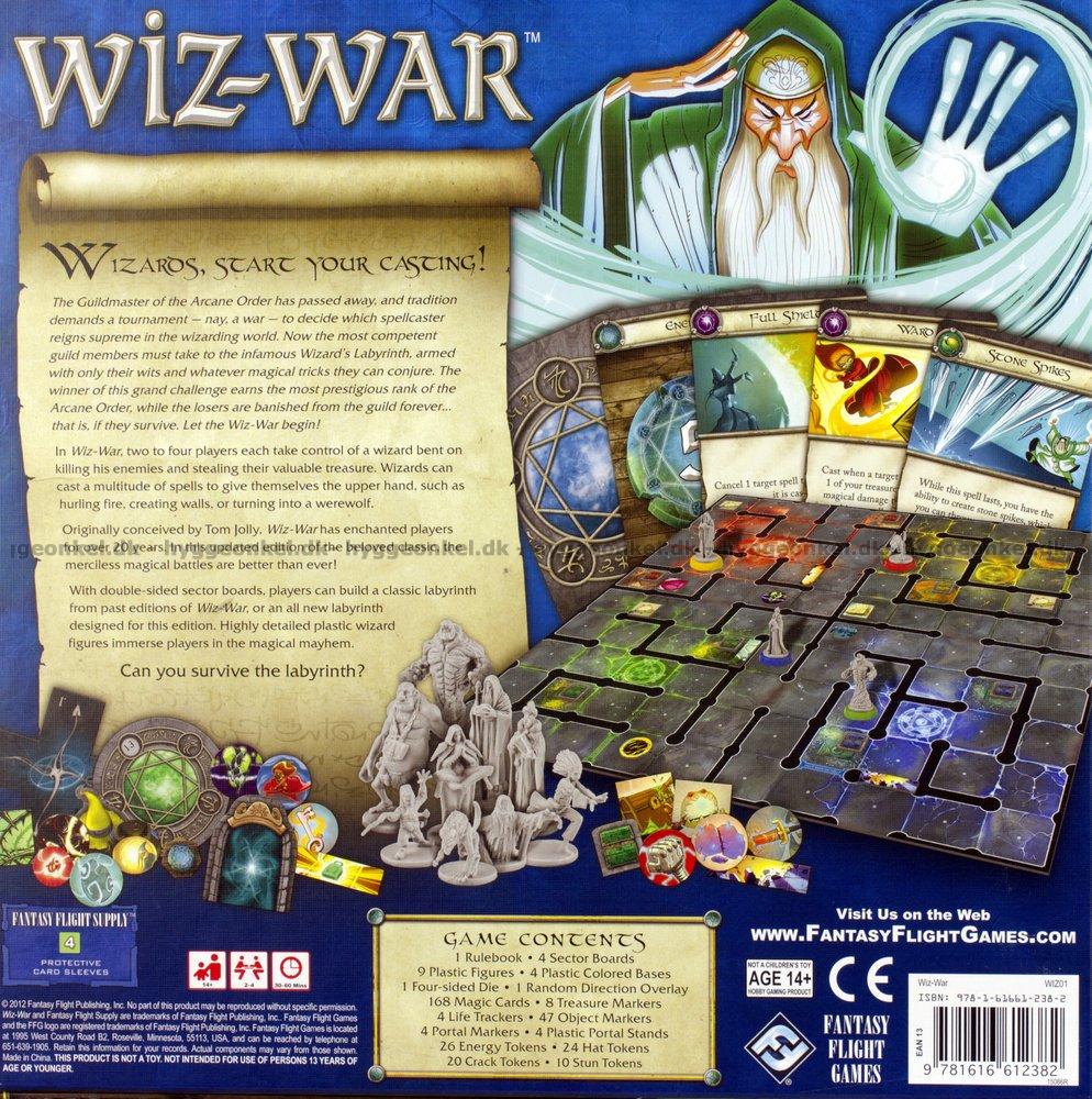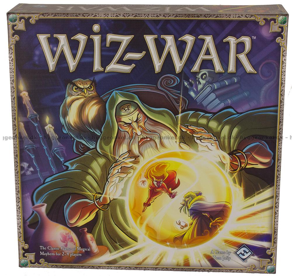 In Wiz-War, wizards wage no-spells-barred magical duels deep in an underground labyrinth. This classic board game of magical mayhem for 2-4 players, created by Tom Jolly in 1983, pits players' wizards against each other in a stupendous struggle for magical mastery. Win by stealing other wizards' treasures and hauling them back to your base, or just score points by blasting the other wizards.