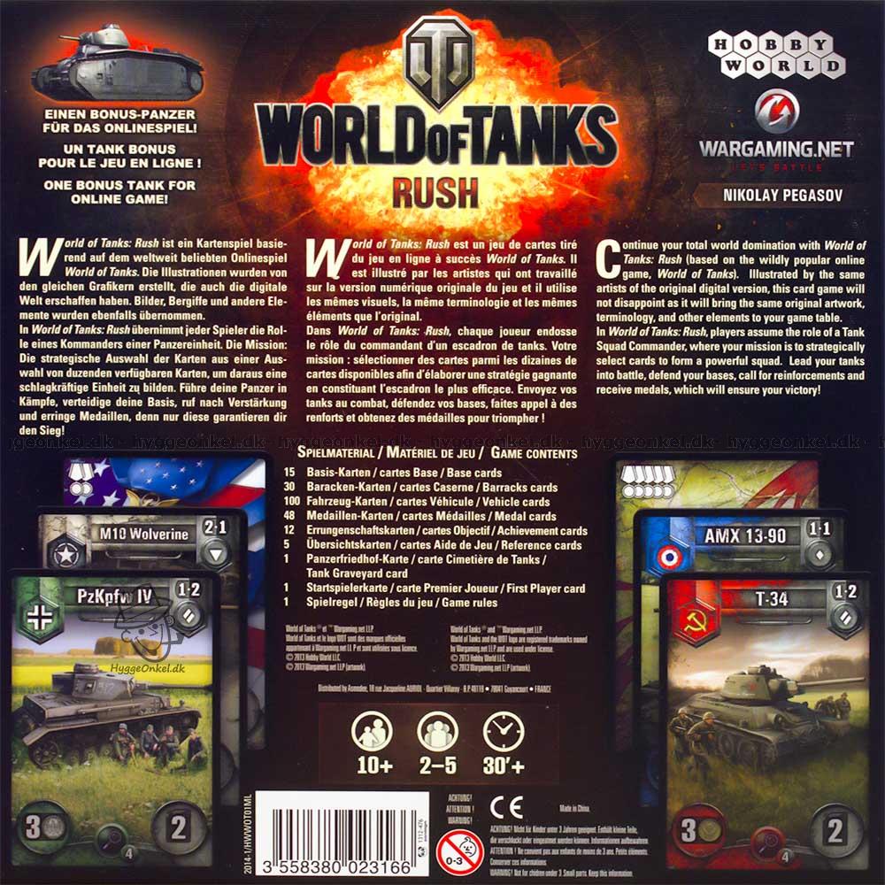 In World of Tanks: Rush you are playing as a tank squad commander, and you lead your tanks into battle, defend your bases, call for reinforcements, and receive medals. The main idea of the game, which uses simple deck-building principles, is to strategically select cards from the hundreds available to form a strong squad. The goal of the game is to earn more medals than everybody else.