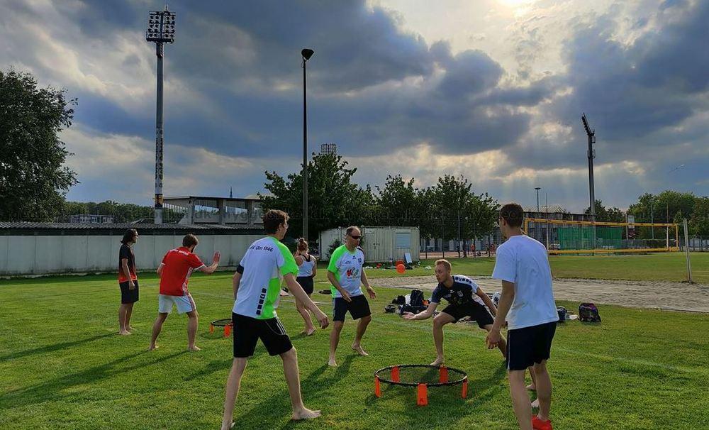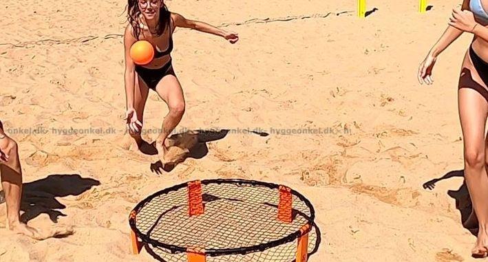 Spelet påminner lite om volleyboll, men här är nätet i stället format som en cirkel som placeras mellan spelarna.