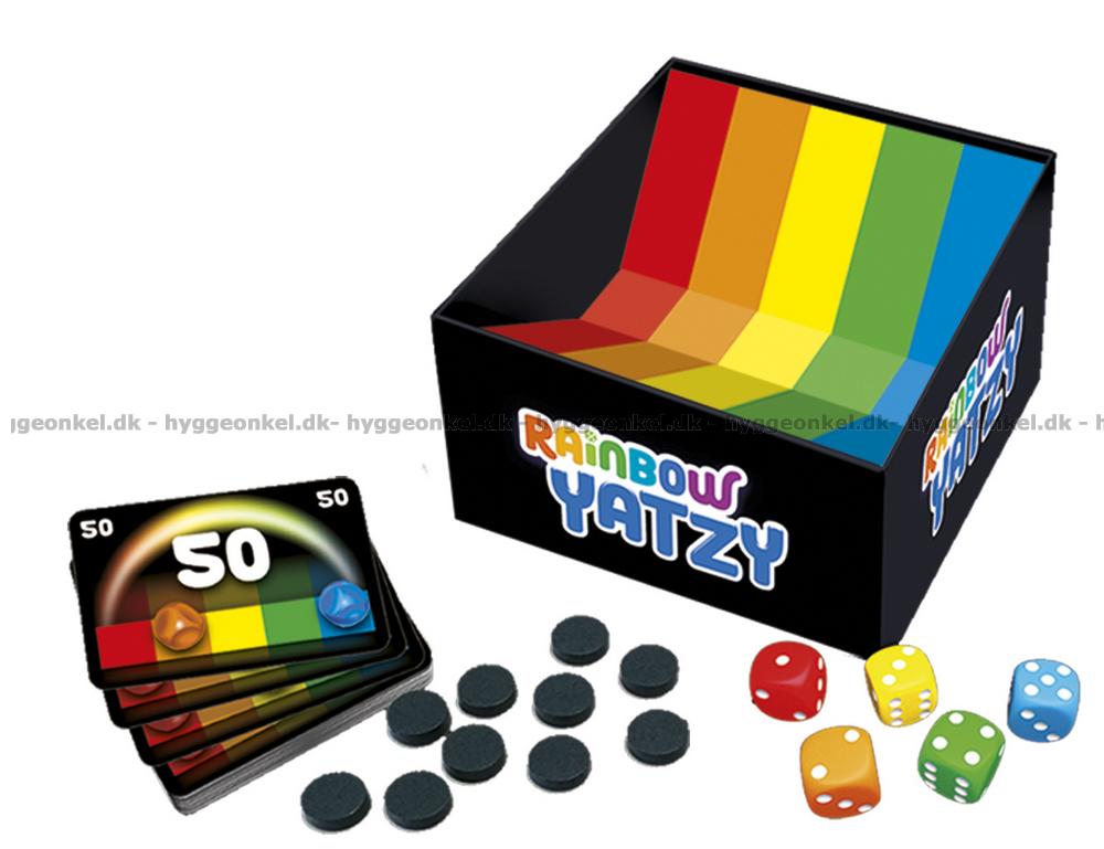 - Rolig utgåva av yatzy med färgtärningar och kort