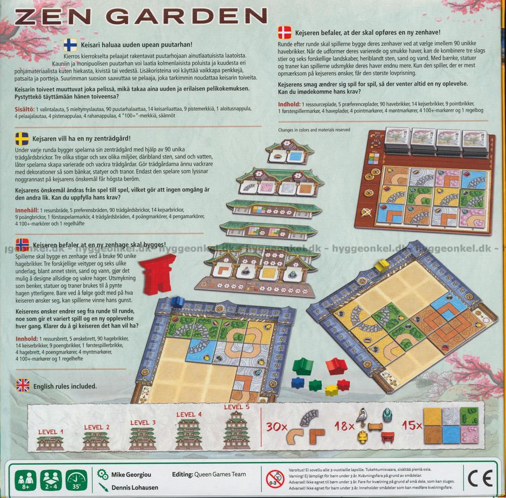Skapa den finaste trädgården med hjälp av 16 brickor. Spelet är enkelt och det går snabbt att komma igång. Ingen spelomgång blir dock den andra lik. Det finns möjligheter att införa flera regler och därmed öka svårighetsgraden. Överväg noga vilka brickor du ska satsa på.
