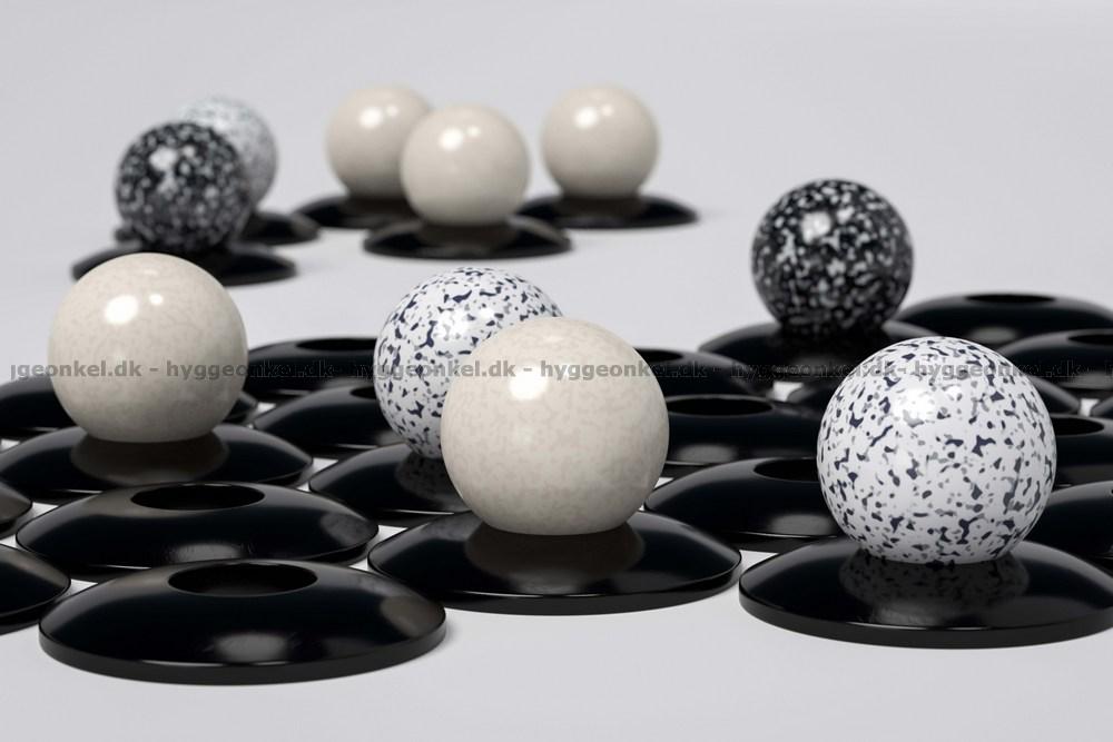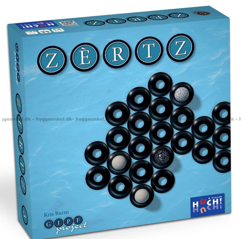 Zertz är ett strategiskt spel, i vilket man ska placera vita, grå och svarta kulor på spelområdet.