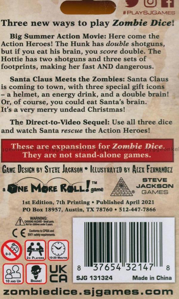3 tärningar + en ny uppsättning regler på engelska är innehållet. Notera att expansionen inte kan spelas utan grundspelet.