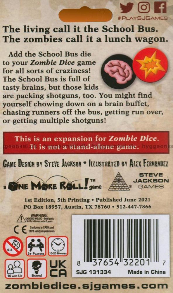 Spela Zombie Dice med den nya skolbusstärningen för mer galenskaper och zombievåld!