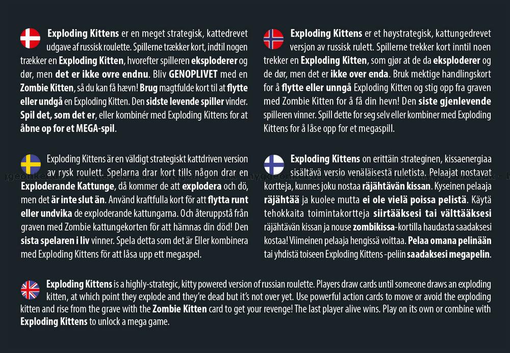 Zombie Kittens är ett roligt kortspel i vilket det gäller att undvika att dra kortet med den exploderande kattungen.