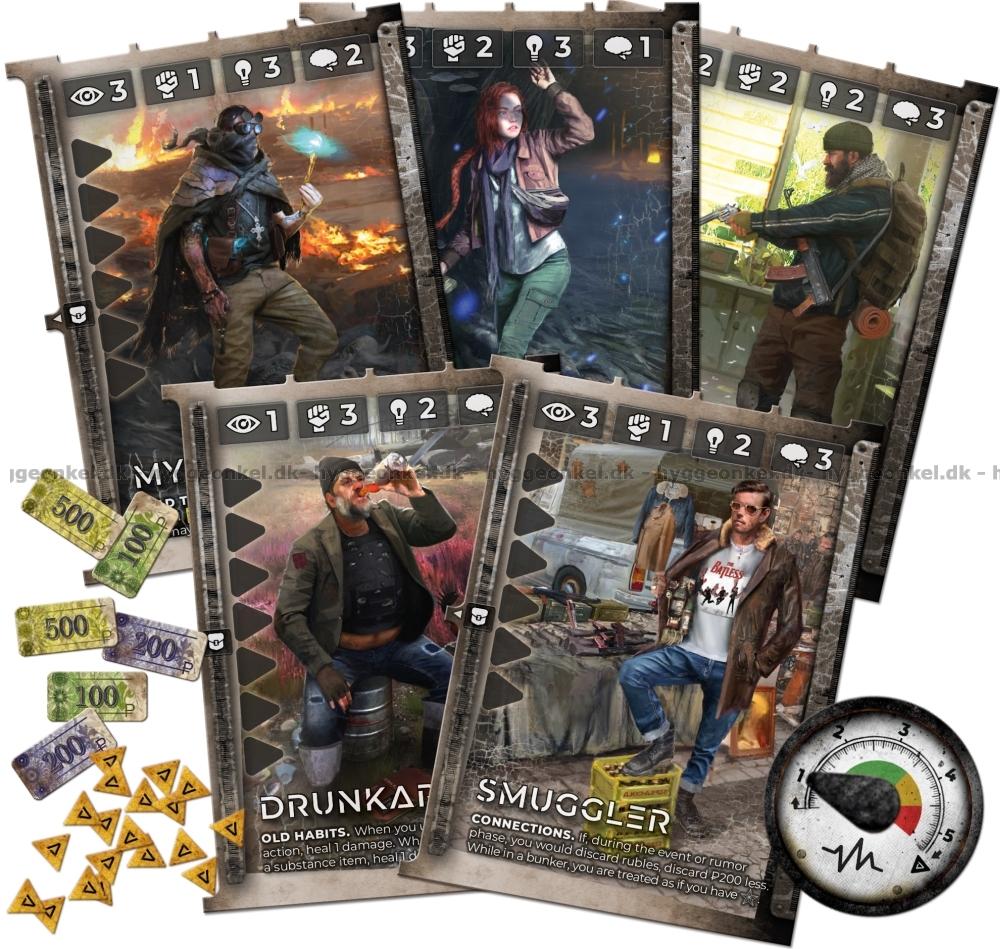 Varje spelare påtar sig rollen som en av 10 karaktärer i spelet. Varje karaktär har en unik egenskap samt några basfärdigheter och grundutrustning. Karaktärsdragen bestämmer hur skickliga de är på att undvika faror, kämpa mot mutanter och hitta viktiga föremål. Och, varje karaktär har sin egen anledning till att vara i Zonen. Detta faktum hjälper till att göra varje spel till en unik upplevelse.