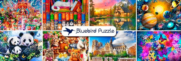 Bluebirds pussel börjar med 500 bitar och de största är på 6000 bitar. De har naturligtvis ett stort sortiment av de mest populära storlekarna på 1000 och 1500 bitar. Pusslen finns med motiv för såväl barn som vuxna, och är du ute efter ett pussel med klara färger så är Bluebird ett bra val.