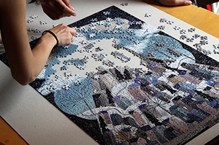 Här hittar du både humor- och konstpusslen från D-Toys.