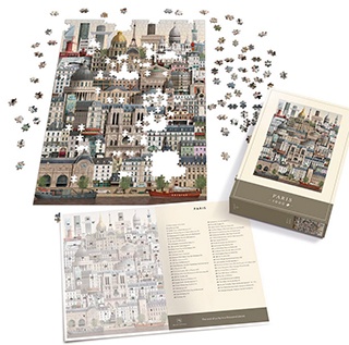 Både ask och innehåll vittnar om hög kvalitet och en känsla för detaljer. I varje pussel ligger en översikt av de byggnader som är porträtterade på framsidan av pusslet. Utöver motiv från storstäder finns också landsdelar/regioner med i den ständigt växande samlingen. Det finns till och med ett Martin Schwartz pussel med Stockholm som tema!