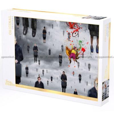 Det är inte bara antalet bitar som avgör hur utmanande ett pussel är. Har du till exempel provat att lägga ett pussel där asken inte visar det motiv du ska lägga? En sådan typ av pussel är Wasgij-pusslen från Jumbo. Här ska du utifrån motivet genomskåda vad personerna tittar på, hur scenariot kommer att se ut 5 minuter senare eller kanske till och med 100 år senare.